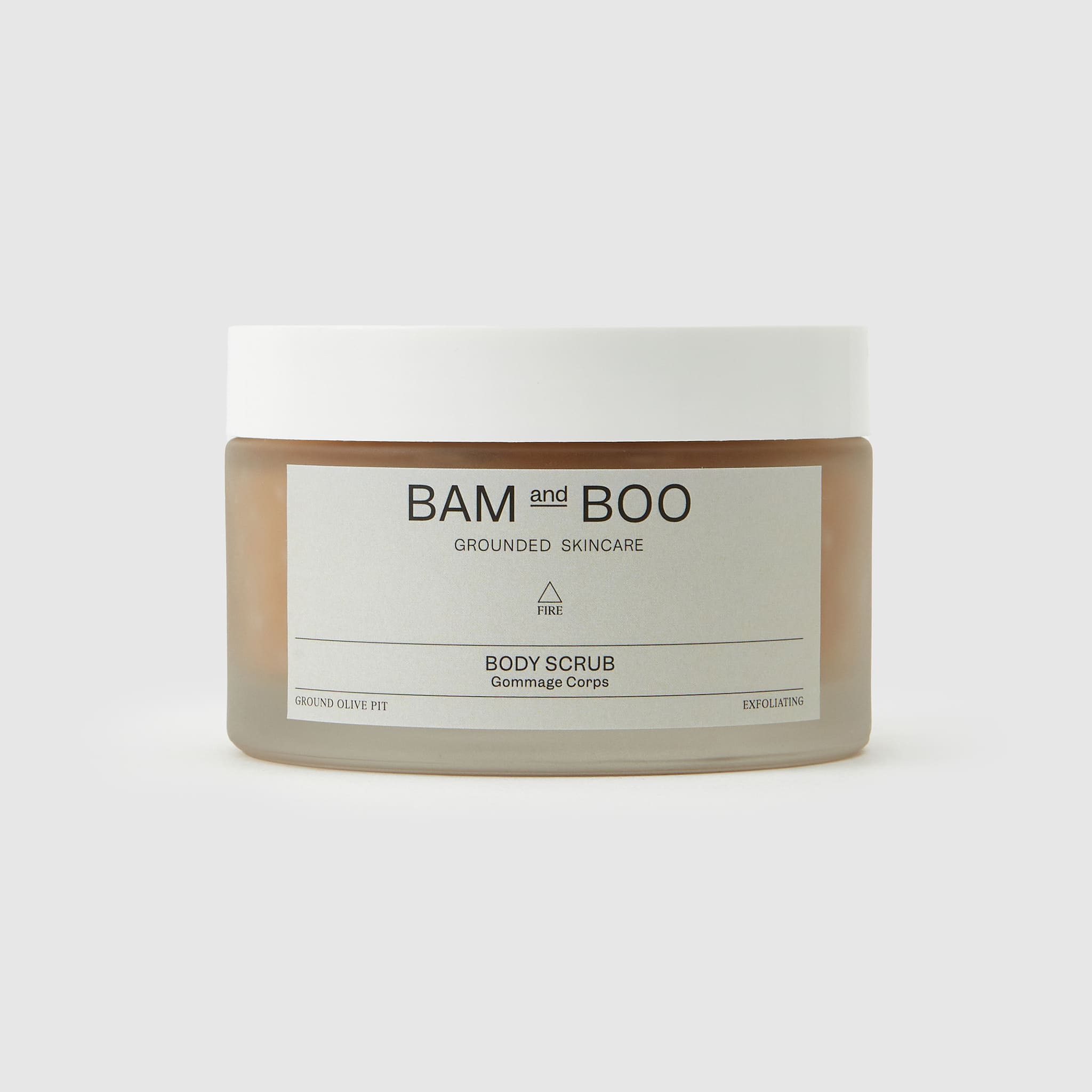 Reveal softer skin with the organic body scrub made with ground olive pit which is gentle and efficient at exfoliating skin.